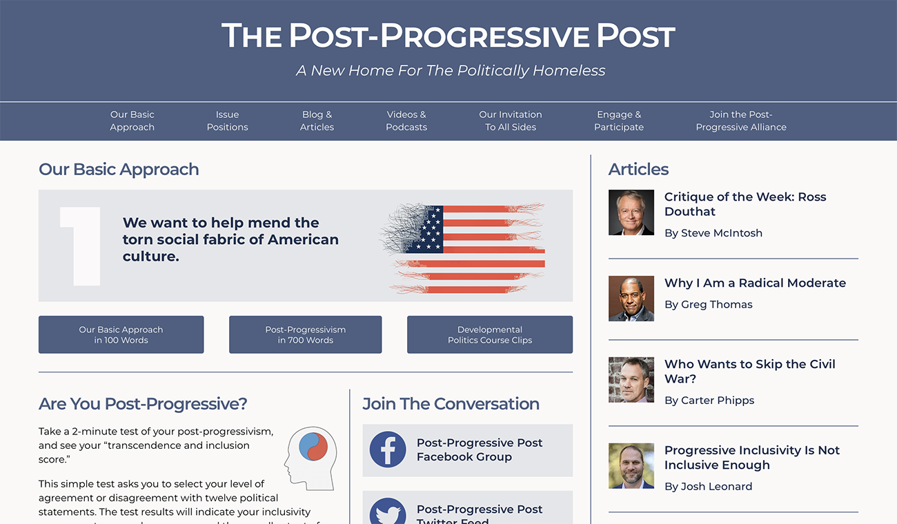 We are pleased to announce the official launch of our new content-hub website designed to highlight the emerging post-progressive perspective, the Post-Progressive Post!