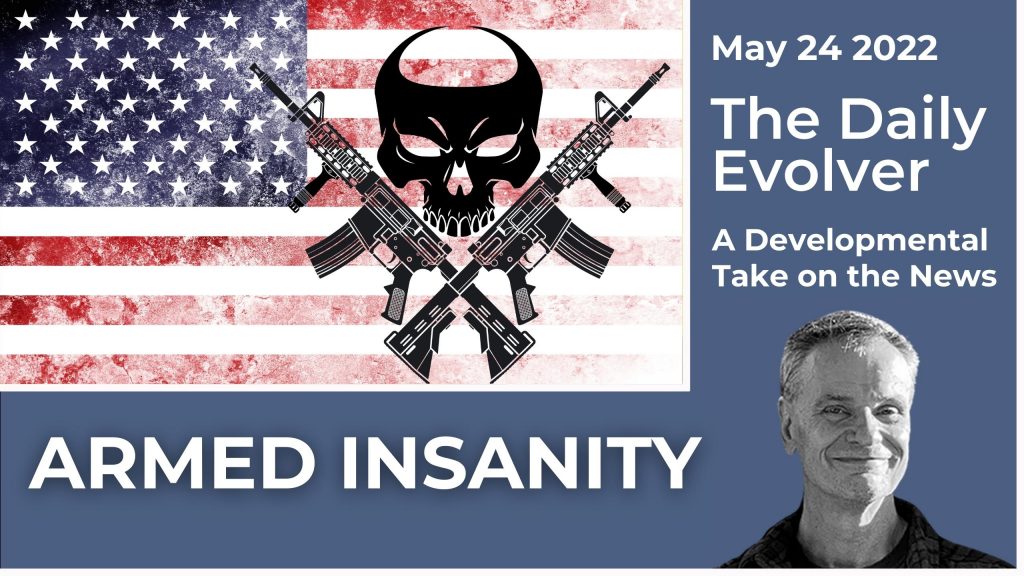 In this episode, Jeff shares our collective outrage and heartbreak over the shooting of the Texas schoolchildren and teachers, and manages to offer some hope that this time it will be different, that this shooting will heighten a social pain-point–unstable young men equipped with weapons of war–sufficiently to transcend political polarities.