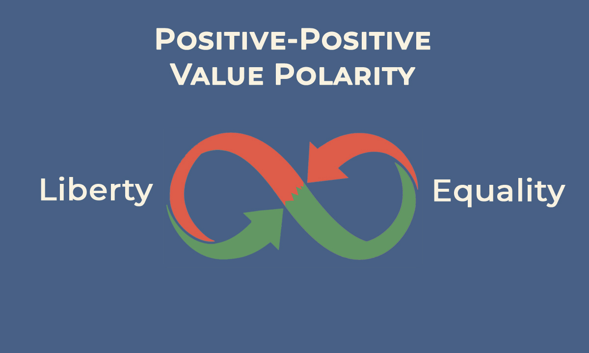 This post begins a new series of my favorite positive-positive interdependent polarities. Each one of these polarities is a kind of philosophical technology for creating value and evolving consciousness. First up: LIBERTY & EQUALITY. These two values need each other to maximize their respective value creating capacity. When brought together in a dynamic relationship of challenge and support, each pole “trues-up” the other.