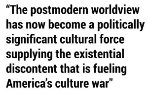 However, the standard narrative that paints the countercultural emergence of the Sixties as merely the folly of self-indulgent young baby boomers who have since grown up is merely wishful thinking on the part of modernists. The contemporary circumstances of the early twenty-first century reveal that the rejectionistic spirit that began in the Sixties has not been subsumed or assimilated within a continually growing modernity. Rather, the postmodern worldview has now become a politically significant cultural force that is supplying much of the existential discontent which continues to fuel America’s ongoing culture war.